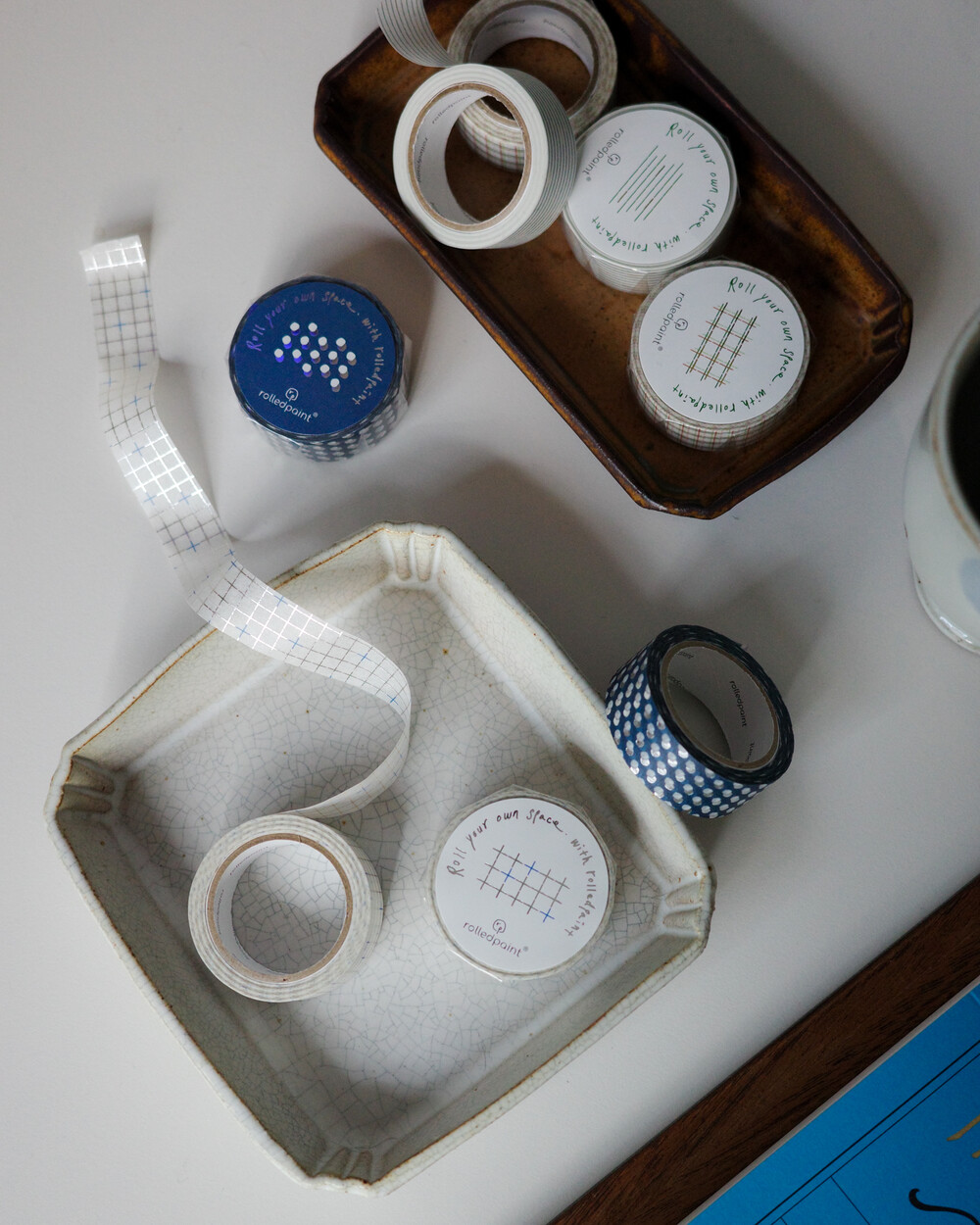 가장 단순하지만, 이 구성들이 갖춰져야 앞으로 펼쳐질 크고 작은 다채로운 이야기들을 하나로 연결시켜 조화롭게 만들어 갈 수 있겠다는 생각이 들었거든요. 그렇게 탄생한 롤드페인트만의 점과 선. 여기에 작은 움직임과 변주를 더해, 다른 여러 마스킹테이프들과도 자연스럽게 어울리고 일상 어디에 놓여도 경계를 부드럽게 이어주는 패턴들을 만들어 보고자 했어요.