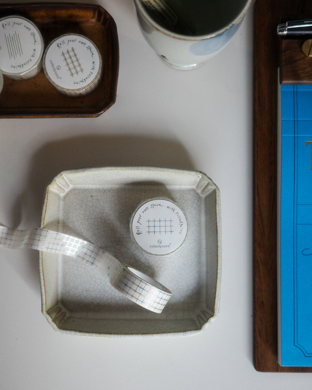 가장 단순하지만, 이 구성들이 갖춰져야 앞으로 펼쳐질 크고 작은 다채로운 이야기들을 하나로 연결시켜 조화롭게 만들어 갈 수 있겠다는 생각이 들었거든요. 그렇게 탄생한 롤드페인트만의 점과 선. 여기에 작은 움직임과 변주를 더해, 다른 여러 마스킹테이프들과도 자연스럽게 어울리고 일상 어디에 놓여도 경계를 부드럽게 이어주는 패턴들을 만들어 보고자 했어요.