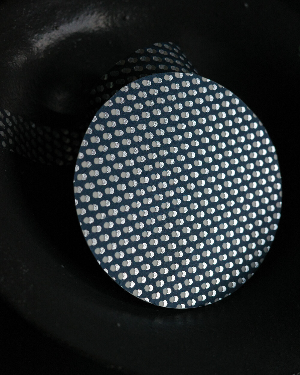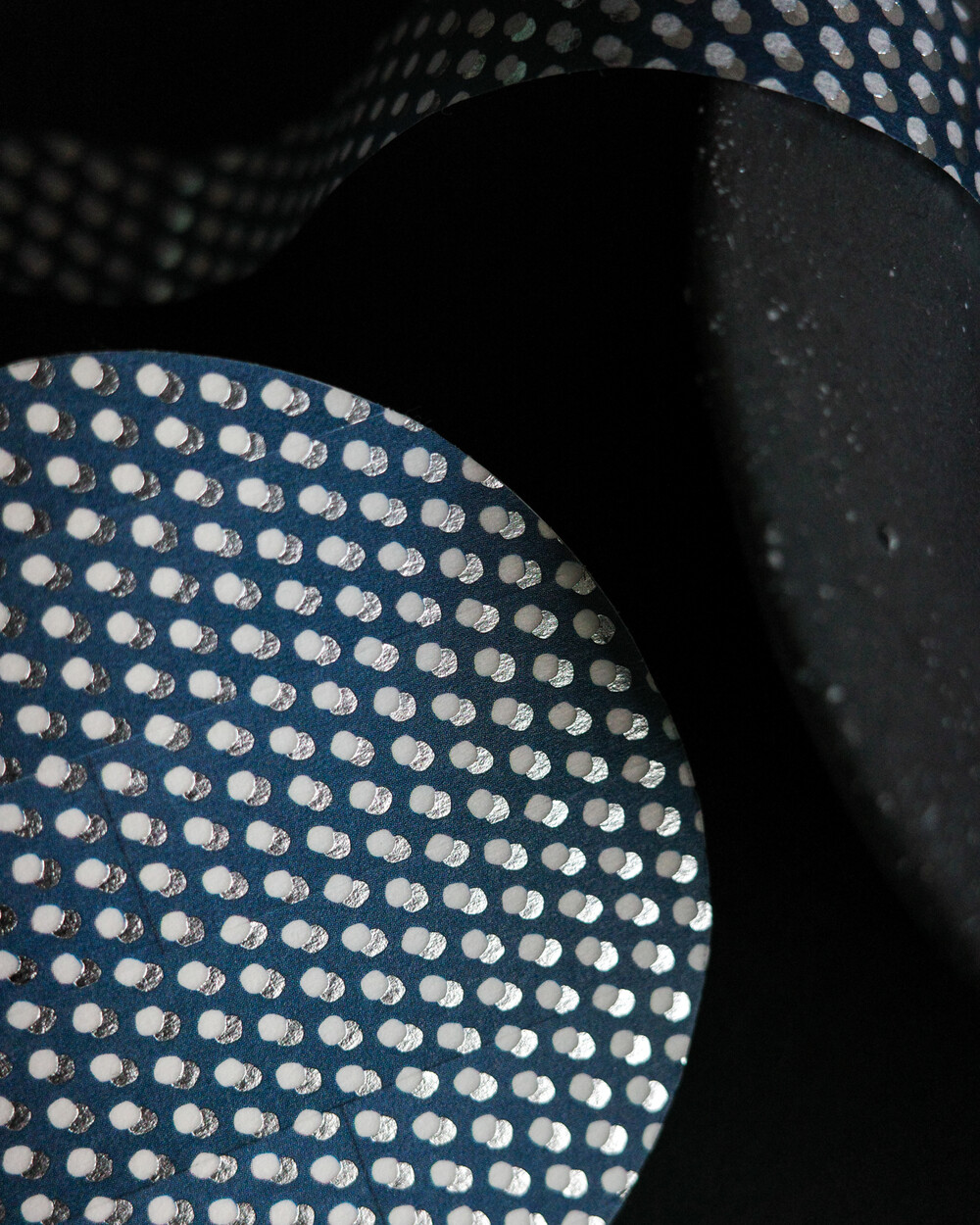 짙은 네이비 바탕 위에 두 개의 도트를 살짝 겹쳐