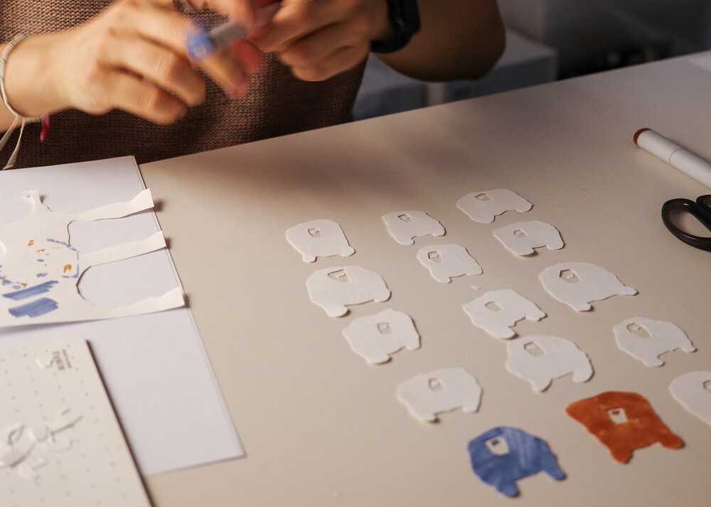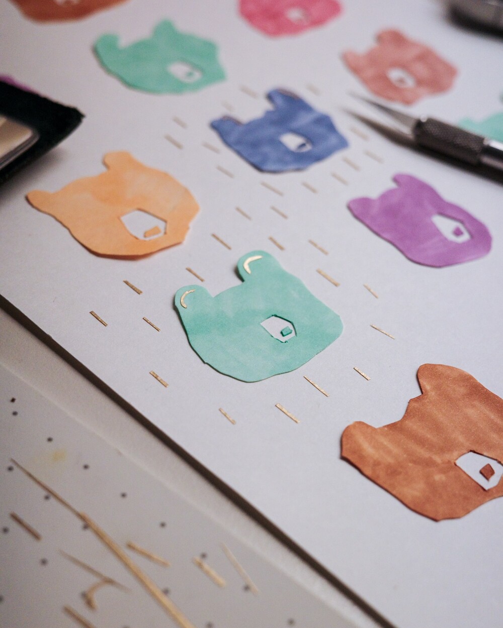 종이를 오려 만든 여러 마리의 곰 얼굴에