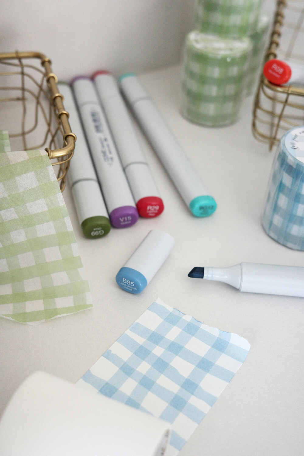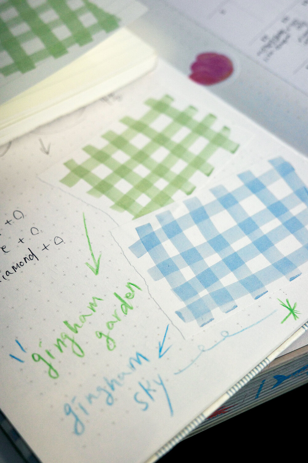 마카로 드로잉한 깅엄 패턴,