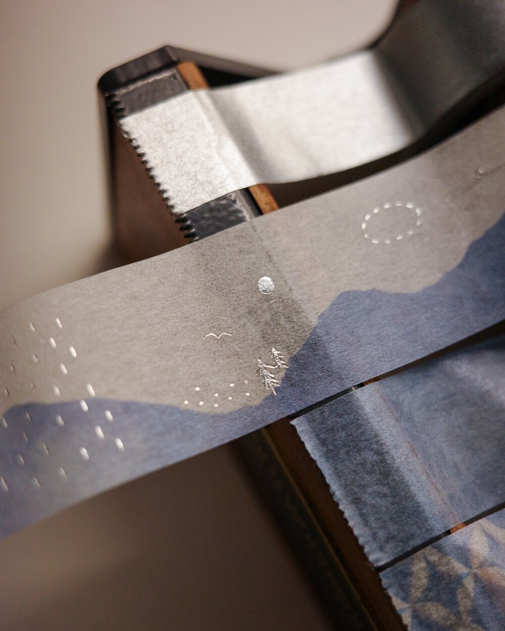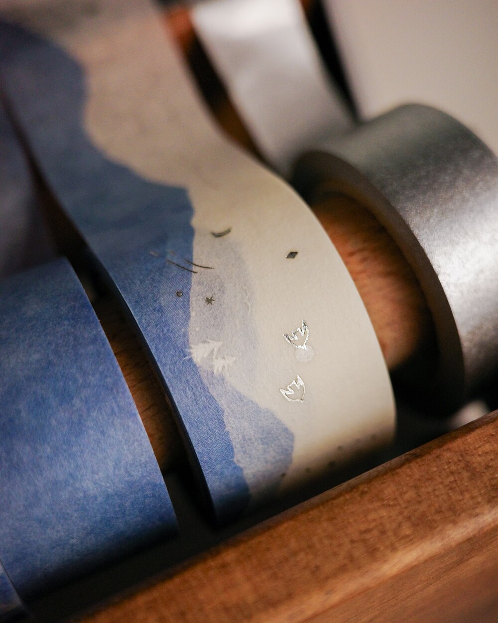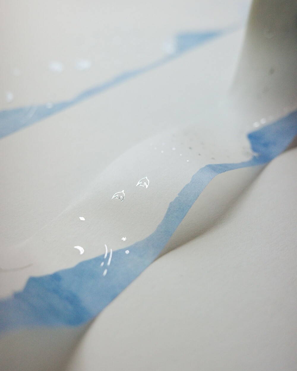 광택이 도는 은색 마스킹테이프로 스케치 작업을 진행한 뒤,