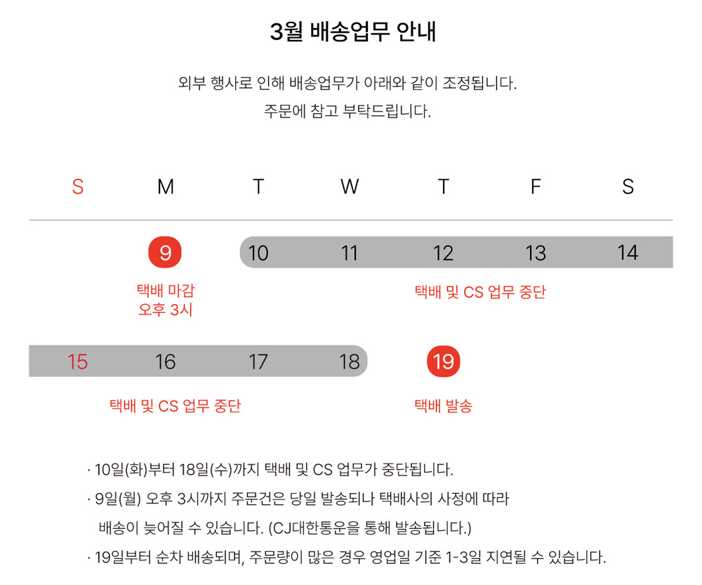 온라인 배송 업무가 조정되오니, 주문에 참고부탁드립니다.