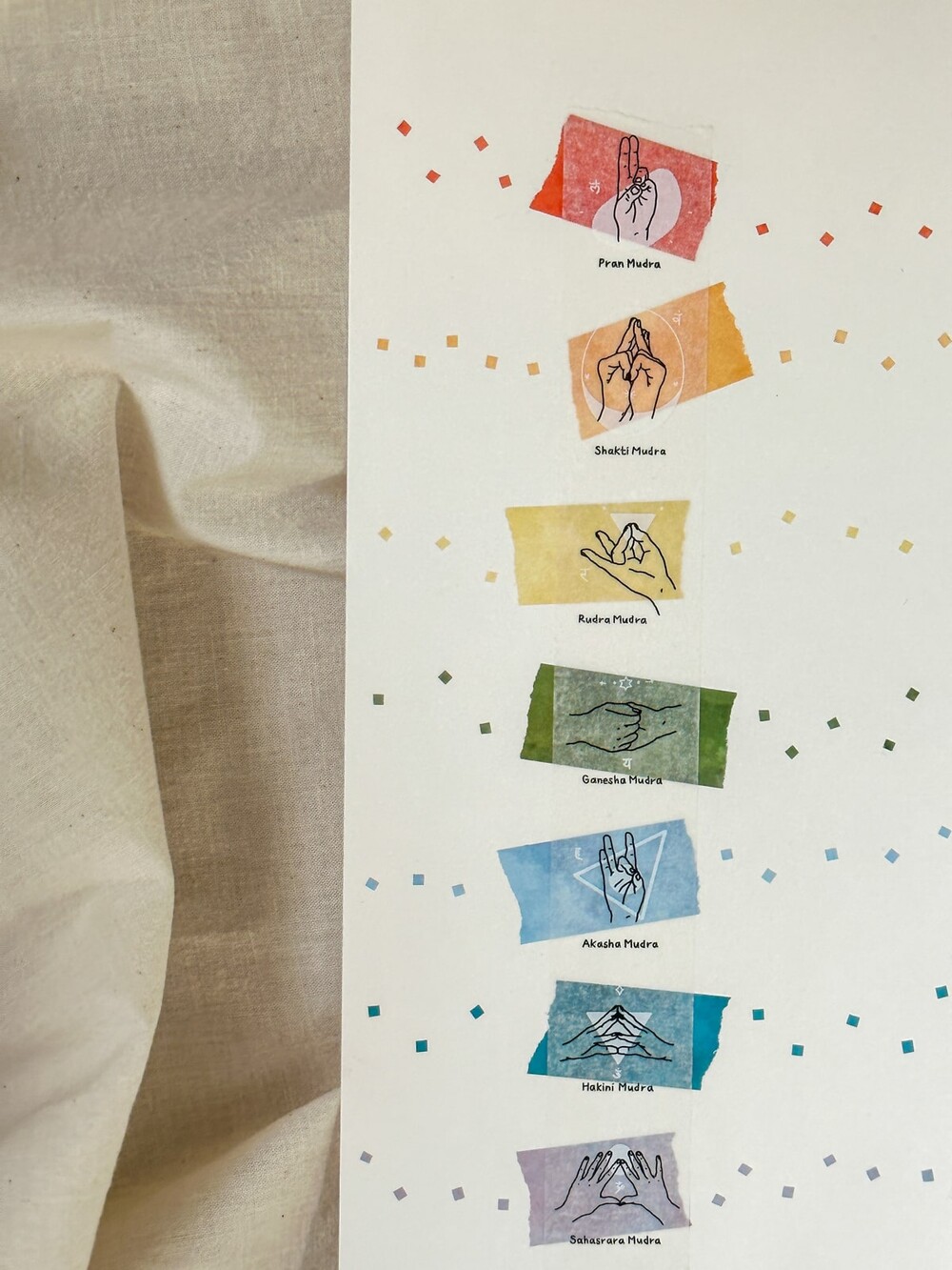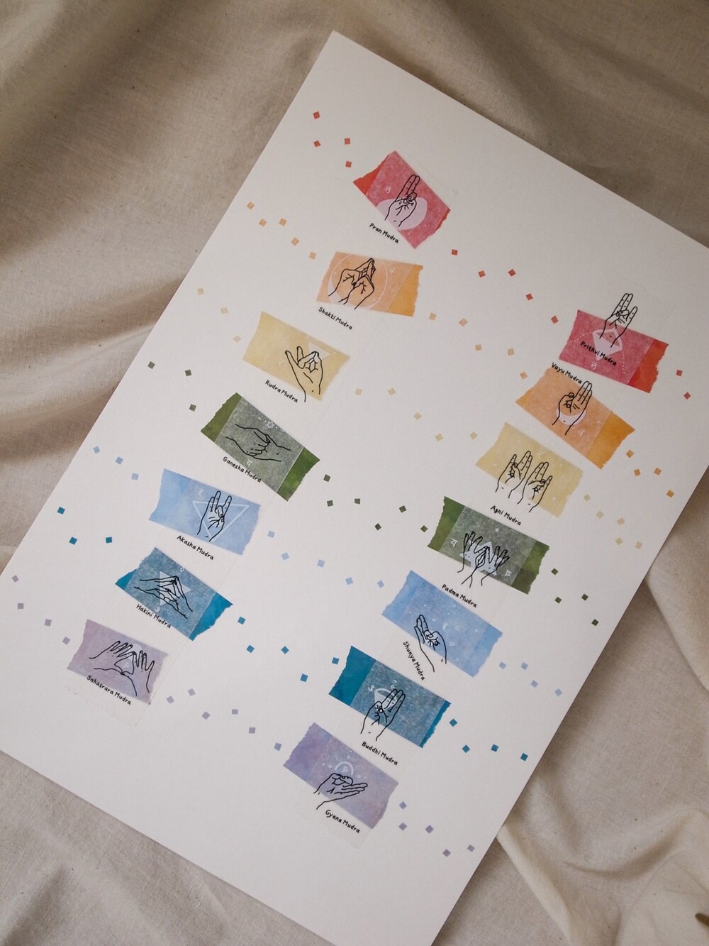 각 일곱 가지 차크라에 맞춘 무드라.