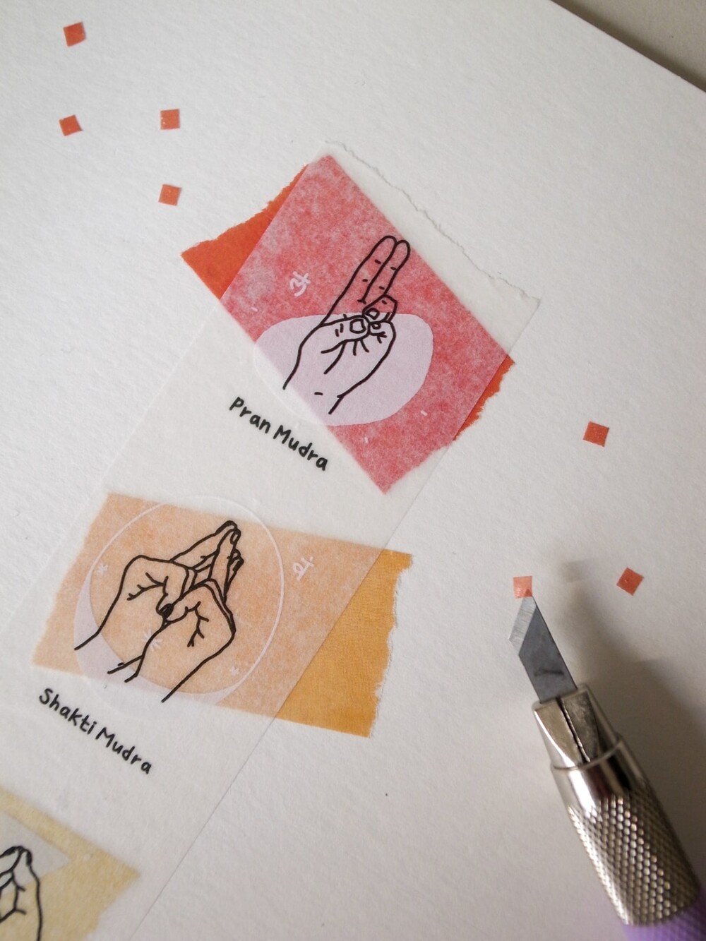 차크라를 위한 요가 아사나 마스킹 테이프와 함께