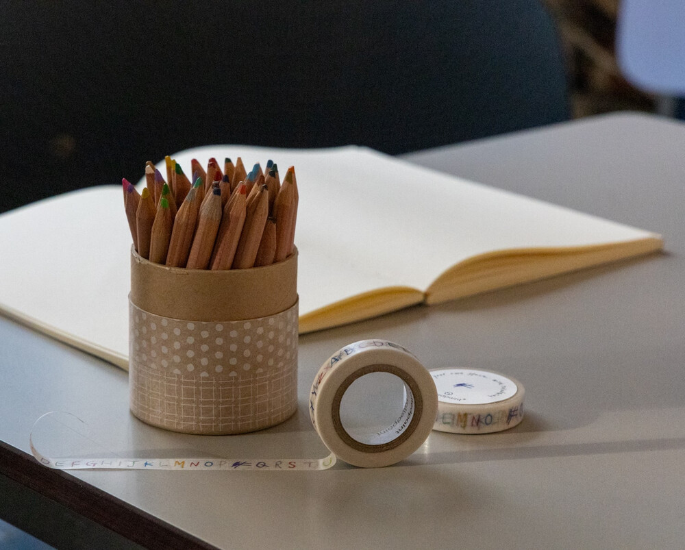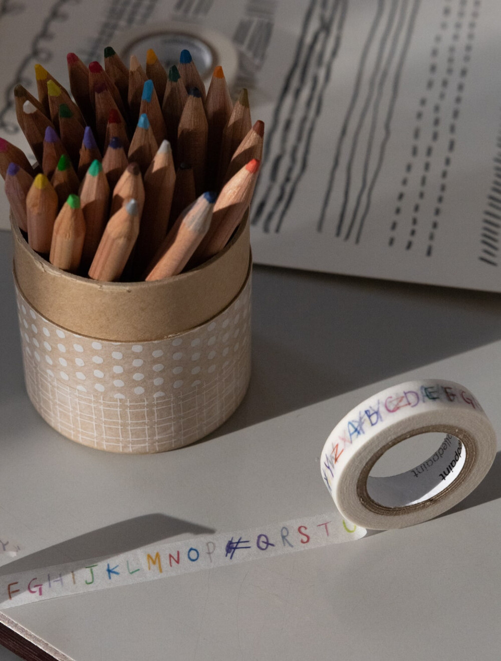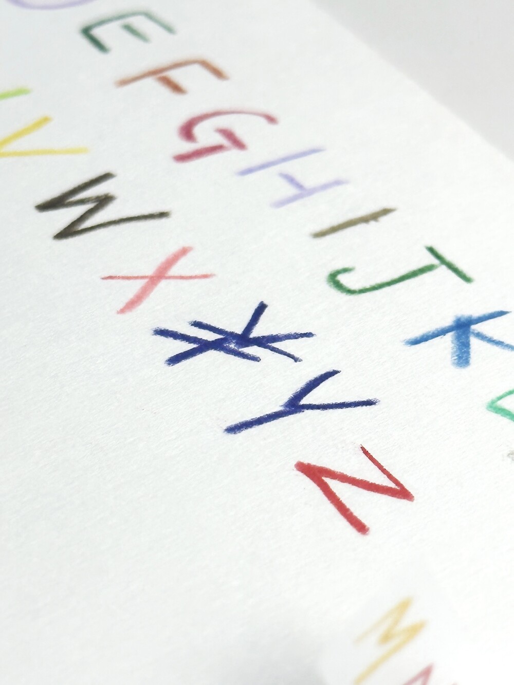 색색깔의 색연필로 꾹꾹 눌러 그려 본 알파벳